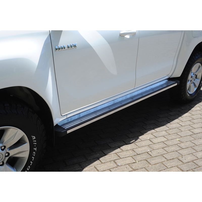Productos4x4 y SUVEstribosEstribos planosESTRIBOS DE ALUMINIO SATINADO TOYOTA HILUX 2005 A 2015 GUZMAN